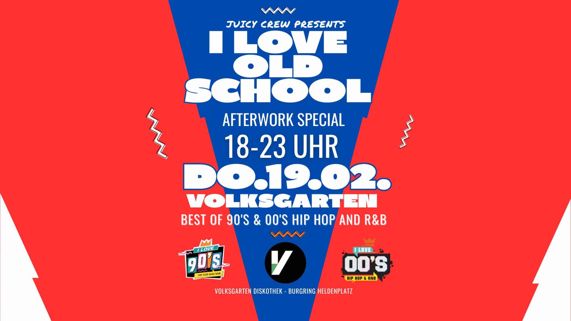 Das erste I Love Old School Afterwork im neuen Jahr! Am Donnerstag, 19. Februar 2026 feiern wir mit euch im legendären Volksgarten: