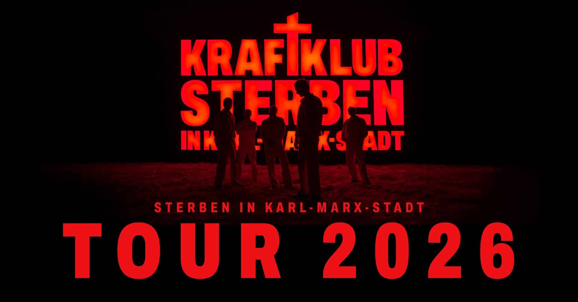 Mit ihrem fünften Studioalbum „Sterben in Karl-Marx-Stadt“(VÖ: 28.11.2025) gehen Kraftklub 2026 auf gleichnamige Tour durch Deutschland, Österreich, Luxemburg und die Schweiz. Tickets gibt es ab Donnerstag, 29.05.2025 exklusiv unter kraftklub.to.